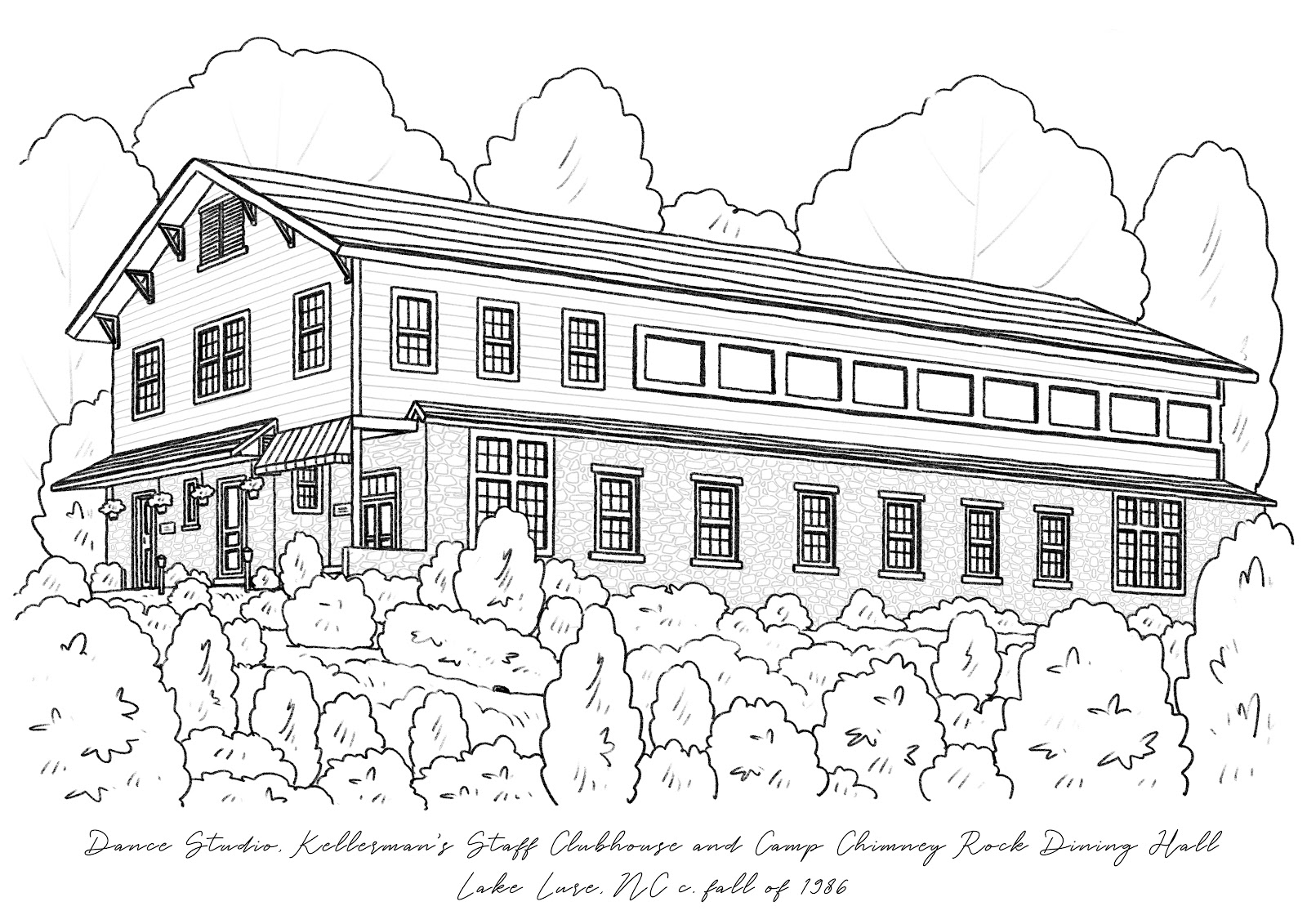 Camp Chimney Rock Dining Hall AKA Kellerman's Mountain Lodge Dance Studio, Staff Clubouse and locker room.
